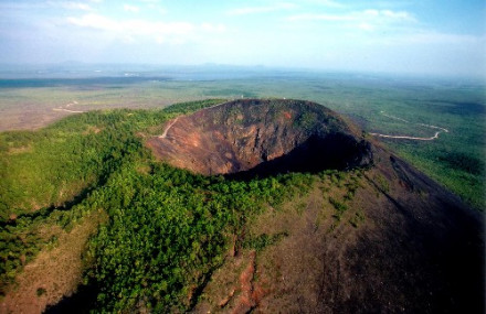 格拉球山天池位于西列火山群的南格拉球火山口內(nèi)。格球山爆發(fā)于203萬年前,南北山體相距只有150米。南格拉球山海拔高度為596.9米,是十四座火山中的截錐體盾狀山形,這里火山體完整,無缺口,頂端火山口呈圓盆狀,曾經(jīng)盛滿過200多萬年積累成的湖水。