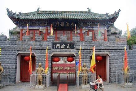 天波楊府是北宋抗遼名將楊業(yè)的府邸,位于宋朝首都東京(今開(kāi)封市)城內(nèi)西北隅,天波門(mén)的金水河旁,故名“天波楊府”。因楊業(yè)忠心報(bào)國(guó),楊家將世代忠良,宋太宗趙光義愛(ài)其清正剛直,不善巧言諂媚的性格,敕在天波門(mén)的金水河邊建無(wú)佞府一座,賜金錢(qián)五百萬(wàn)蓋“清風(fēng)無(wú)佞天波滴水樓”,并親筆御書(shū)“天波楊府”匾額。為國(guó)家AAAA級(jí)景區(qū)。