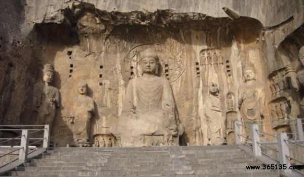 龍門:位于洛陽市洛龍區(qū)龍門鎮(zhèn)伊河兩岸。這里“兩山相對,望而若闕。伊河歷其間北流”(水經(jīng)注)所以古 稱伊闕。伊河兩岸的龍門山和香山,石壁峭立,空缺如門,由于處在隋、唐帝都之南故叫龍門。龍門滿山翠柏,瀑布飛泉,長橋臥空,伊水碧流,尤以龕窟雕飾著稱于世。自古以來,“龍門山色”被譽為“洛陽八大景”之首。龍門石窟開始營造于北魏孝文帝太和十九年。歷經(jīng)東魏和西魏,北齊和北周,以及隋、唐連續(xù)營造達四百多年之久。以后,五代、北宋、清均有雕造,但為數(shù)甚少。據(jù)龍門文物保管所統(tǒng)計兩山現(xiàn)存窟龕二千一百多個,佛塔四十多座,大小造像十萬余尊,其中最大的高17.14米,而最小的僅有2厘米。龍門石窟規(guī)模宏大,分布于伊河兩岸懸崖峭壁之上的潛溪寺、賓陽北洞、賓陽中洞、奉先寺、萬佛洞、蓮花洞、藥方洞、古陽洞、賓陽南洞、大萬伍佛洞、擂鼓臺三洞、伊闕佛龕之碑、龍門二十品,總計長達一千多米,內(nèi)容豐富多彩,雕藝精美而超凡。有史以來,它與敦煌石窟、云岡石窟,并稱為我國三大石刻藝術(shù)寶庫。一九六一年國務(wù)院確定龍門石窟為全國重點文物保護單位。