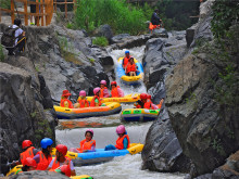 豫西大峽谷漂流----豫西大峽谷斥資近億元打造的國內頂級漂流,集“巖洞漂流、暗河漂流、峽谷漂流、瀑布漂流、回旋漂流”五大特色于一體,漂流河全程6公里,穿越3處穿山巖洞,經過2處回旋漂流,飛躍白龍瀑、九曲瀑、大淙瀑。從起漂碼頭到第一級渡口,約有一公里的平緩水域,水勢潺湲。其后水流順勢而下,則由不得你不瘋狂,不尖叫!漂流河道時而平緩安靜、波光粼粼如掩面嬌羞的少女;時而飛流直下,偏偏輕舟瞬時激起千層白浪,倏然之間,乖順的輕舟突然間就成了桀驁不順的烈馬,肌肉緊繃,左沖右撞。尖叫之聲隨之響徹于山谷之中,但卻動聽如天籟之聲。