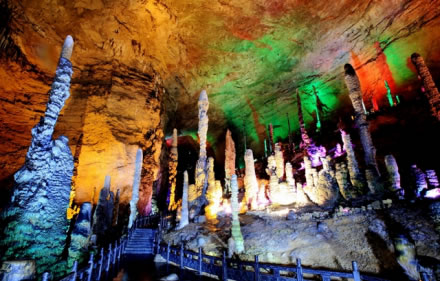 黃龍洞位于湖南省張家界市核心景區(qū)武陵源風(fēng)景名勝區(qū)內(nèi),是世界自然遺產(chǎn)、世界地質(zhì)公園武陵源的有機(jī)組成部分,屬典型的喀斯特巖溶地貌,以其龐大的立體結(jié)構(gòu)洞穴空間、豐富的溶洞景觀、水陸兼?zhèn)涞挠斡[觀光線路獨(dú)步天下,被列為國際旅游洞穴會員、全國35個(gè)王牌景點(diǎn)之一、中國首批AAAA級旅游景區(qū)、中國旅游首批知名品牌、中國馳名商標(biāo)、湖南省最佳旅游景區(qū)、張家界旅游精品線之一,享有“世界溶洞奇觀”、“世界溶洞全能冠軍”之美譽(yù),2005年被評選為“中國最美旅游溶洞”。
