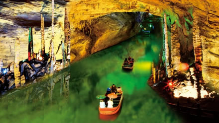 響水河是黃龍洞內(nèi)三條地下陰河中的一條,位于第二層。它全長2800米,平均水深平6米,最深處有12米,目前乘船游覽其中的一段為800米,時(shí)間約8分鐘左右。響水河平均水溫常年在攝氏16度左右,盛產(chǎn)國家二級保護(hù)動物娃娃魚和通體透明的“玻璃魚”。蕩舟響水河,沿途充滿神秘誘惑的風(fēng)景,如龍王金盔、海螺吹天等景點(diǎn)都值得您慢慢欣賞和品味?展扔腻,岸危穹高。忽仰忽傾,若明若暗,恍若回到混沌的遠(yuǎn)古時(shí)代。1992年聯(lián)合國世界自然遺產(chǎn)專家盧卡思考察響水河時(shí),稱贊道:“黃龍洞是我見到的最漂亮的溶洞,還有這么美的陰河,真是不可思議!”