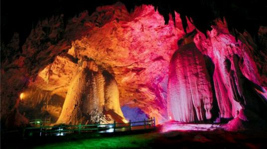 梅山龍宮位于湖南省婁底市新化縣資水河畔,是一個(gè)集溶洞、峽谷、峰林、絕壁、溪河、漏斗、暗河等多種喀斯特地質(zhì)地貌景觀于一體的大型溶洞群,有九層洞穴,探明長(zhǎng)度2870余米,已開發(fā)游覽路線1896米,其中包括長(zhǎng)466米世界罕見的神秘地下河。整個(gè)洞府分為龍宮迎賓、碧水蓮宮、玉皇天宮、龍宮仙苑、龍宮風(fēng)情、龍鳳呈祥六大景區(qū)。