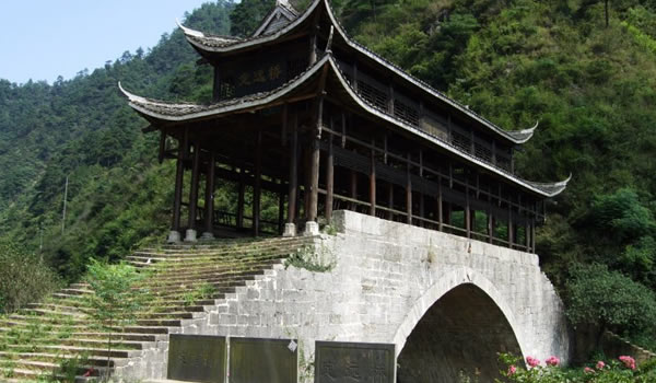 定遠(yuǎn)橋 定遠(yuǎn)橋位于綏寧縣關(guān)峽鄉(xiāng),是綏寧縣知縣范成龍捐獻(xiàn)自己的俸祿銀子于康熙二十三年(1684年)修建。橋長一十二丈六尺,寬二丈六尺,高五丈六尺,單孔,半圓拱。橋面用青石鋪面,青石已被磨得油亮發(fā)光,橋頂屋架木瓜、懔條緣皮、青瓦翹檐、瓦頭潔白,橋依山而建,古樸威嚴(yán);亭為杉木架構(gòu),卯榫嵌合,不用一釘,圓石為礎(chǔ),巨木為柱,片板為欄,長方為座,可供憩息,可避風(fēng)雨。由于這里的險(xiǎn)關(guān)隘口天然生成,為歷代兵家要塞,故名關(guān)峽;現(xiàn)為湖南省保護(hù)文物; 橋下的“蘭溪”溪水清澈見底,水流湍急,水似一把利刃,把猴子山一劈兩開穿山而過。 |