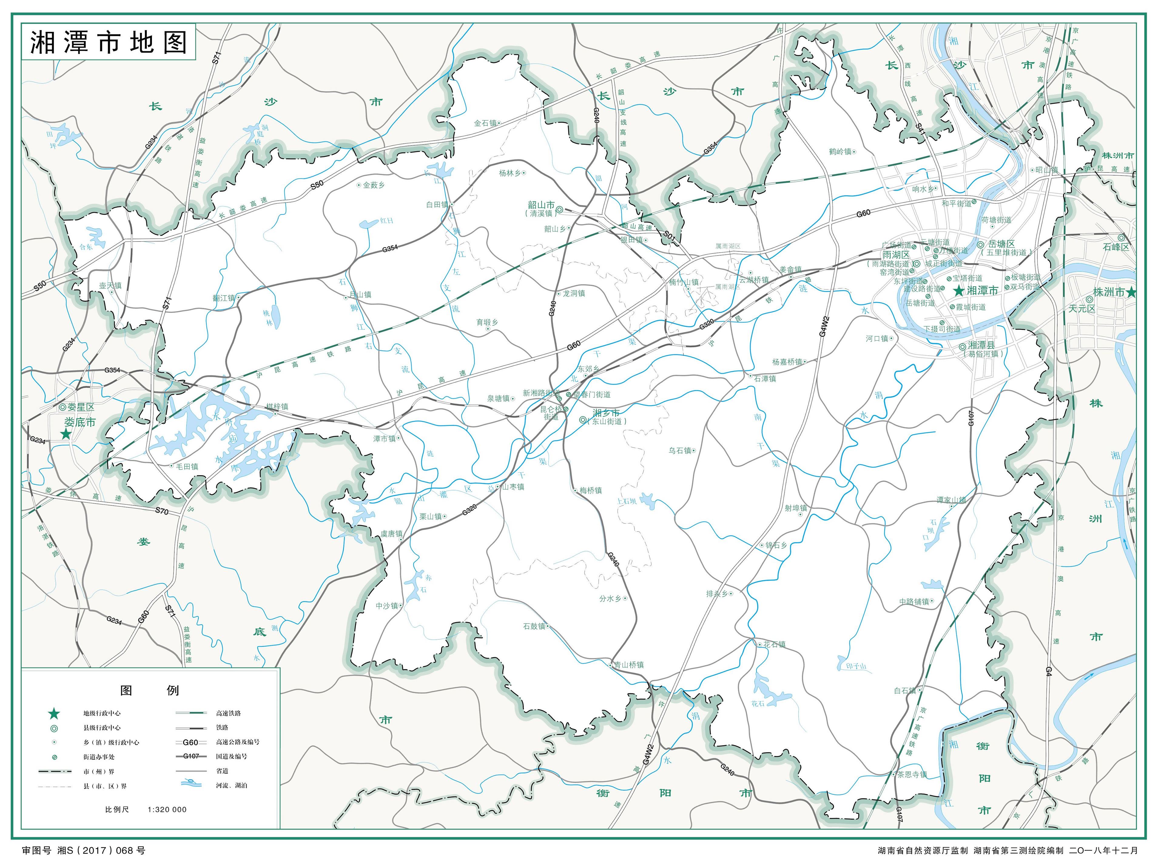 湘潭市轄2個(gè)市轄區(qū)、1個(gè)縣,代管2個(gè)縣級(jí)市: