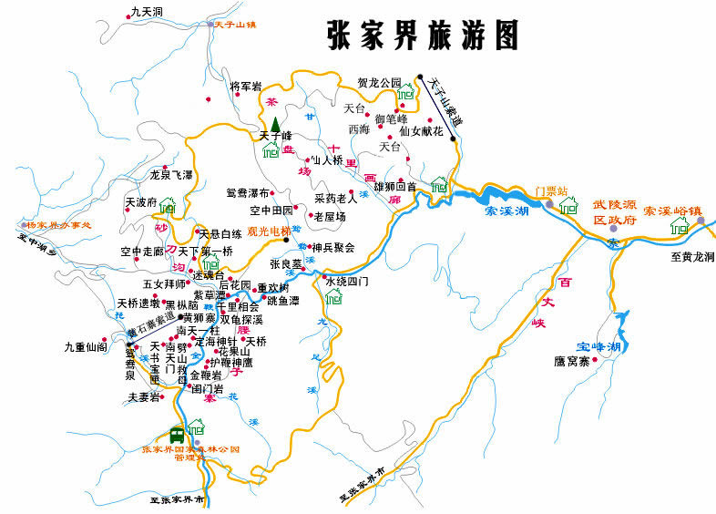 張家界市旅游資源非常豐富,景區(qū)、景點(diǎn)繁多。有中國(guó)第一個(gè)國(guó)家森林公園 張家界國(guó)家森林公園;索溪峪自然保護(hù)區(qū);天子山自然保護(hù)區(qū);中國(guó)首批20個(gè)國(guó)家級(jí)自然保護(hù)區(qū)之一、中國(guó)生物圈保護(hù)區(qū)網(wǎng)絡(luò)首批45個(gè)網(wǎng)絡(luò)成員之一的湖南八大公山國(guó)家級(jí)自然保護(hù)區(qū);天門(mén)山國(guó)家森林公園;省級(jí)風(fēng)景名勝區(qū)天門(mén)山、茅巖河風(fēng)景名勝區(qū);"地下明珠"黃龍洞;"人間瑤池"寶峰湖;被譽(yù)為世界溶洞之奇、亞洲第一洞的九天洞;"江南名剎"普光禪寺;土家人的"圣地"土家風(fēng)情園;"道教勝地"五雷山;賀龍紀(jì)念館、紅二方面軍長(zhǎng)征出發(fā)地、湘鄂川黔革命根據(jù)地紀(jì)念館等革命紀(jì)念地等等。