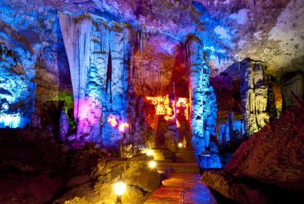黃龍洞位于湖南省張家界市核心景區(qū)武陵源風(fēng)景名勝區(qū)內(nèi),是世界自然遺產(chǎn)、世界地質(zhì)公園武陵源的有機(jī)組成部分,屬典型的喀斯特巖溶地貌,以其龐大的立體結(jié)構(gòu)洞穴空間、豐富的溶洞景觀、水陸兼?zhèn)涞挠斡[觀光線路獨(dú)步天下,被列為國(guó)際旅游洞穴會(huì)員、全國(guó)35個(gè)王牌景點(diǎn)之一、中國(guó)首批AAAA級(jí)旅游景區(qū)、中國(guó)旅游首批知名品牌、中國(guó)馳名商標(biāo)、湖南省最佳旅游景區(qū)、張家界旅游精品線之一,享有“世界溶洞奇觀”、“世界溶洞全能冠軍”之美譽(yù),2005年被評(píng)選為“中國(guó)最美旅游溶洞”。