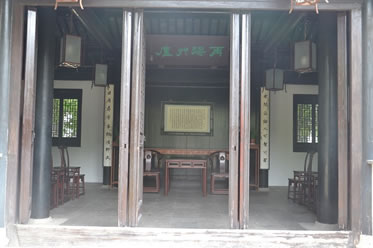 依庸堂前懸掛有對聯(lián)“風聲雨聲讀書聲聲聲入耳,家事國事天下事事事關心”,由東林領袖顧憲成所撰,是東林志士讀書講學而不忘國家安危的真實寫照。此聯(lián)現(xiàn)為廖沫沙于1982年手書。