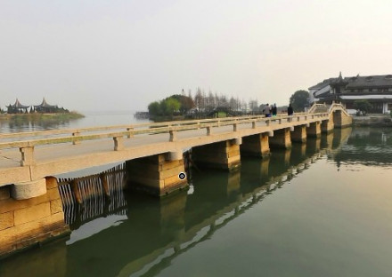 十眼橋位于昆山市錦溪鎮(zhèn)南,架于墳塘港至五保湖口,南北走向。橋長(zhǎng)52米、寬2.8米、高3米,主孔跨度3.5米。九墩十孔。橋墩采用條石整齊疊砌,結(jié)構(gòu)堅(jiān)固。建國(guó)后,幾經(jīng)修繕,現(xiàn)保存良好。