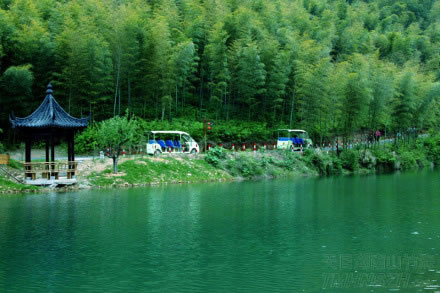 在竹海中,兩山夾峙之間,山澗水和天然雨水匯集成了小小的“靜湖”,湖水終年清冽。