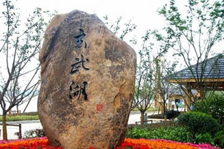 玄圃位于玄武湖西南,始建于473-483年(南齊永明年間),改建于502-557年(南梁年間),是梁昭明太子蕭統(tǒng)的私園。昭明太子在此期間建亭館,鑿泉池,邀集名人學(xué)士泛舟湖上,游泳其間,編寫(xiě)出中國(guó)第一部詩(shī)文集——《文選》。復(fù)建的玄圃共分三棟建筑,總占地面積約10000平方米,建筑面積約1000平方米,建筑風(fēng)格為六朝風(fēng)格,含蕭統(tǒng)塑像、凈明精舍、明月軒、明月亭、天籟清音館、觀瀑亭、宛轉(zhuǎn)廊等仿六朝風(fēng)格建筑。