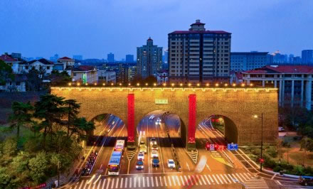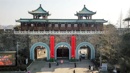 太平門(mén)位于玄武湖東南角,是南京明城墻十三座明代京城城門(mén)之一,是明朝京師應(yīng)天府京城的正北門(mén),城門(mén)東側(cè)城墻被稱為“龍脖子”。復(fù)建后的太平門(mén)為方便交通改為三孔城門(mén),主門(mén)洞設(shè)四股車道,兩個(gè)輔門(mén)洞各設(shè)兩股,城門(mén)寬約72米。