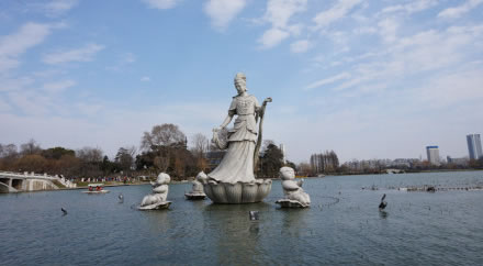 童子拜觀音石為珍貴的太湖奇石,系北宋花石綱遺物,因其形態(tài)極似而得名,位于假山前。石高6.3米,寬0.9米,具有太湖石“瘦、透、漏、皺”的典型特征,是太湖石中的精品。假山之巔,引瀑布飛流直下,瀉入鑿地而圍的水池。是進(jìn)入玄武湖后名副其實(shí)的第一景點(diǎn)。