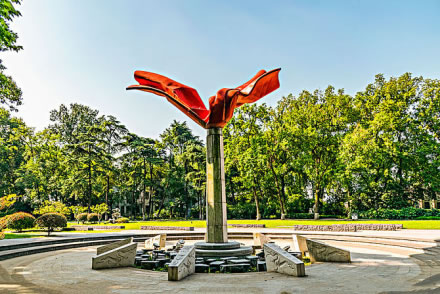 杜鵑園位于梁洲西北角,占地380平方米,由原有的牡丹園改建而成,并擴(kuò)大了原有專類園面積,栽植映山紅、毛鵑等6000多株,杜鵑園植物景觀層次分明,杜鵑品種豐富。杜鵑園由湖石堆砌自然花池,游路沿花池邊曲折回環(huán)。