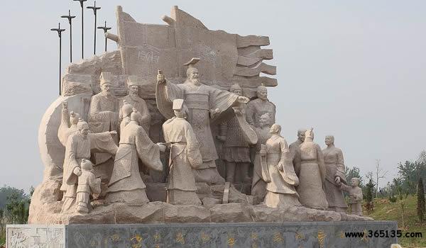 沛縣城雕:建于1996年,高22米,位于城南鄭沛路入城處。四根巨柱擎起晶體圓球,金色巨龍環(huán)繞球上,象征著“千古龍飛地,一代帝王鄉(xiāng)”的沛縣正以騰飛的姿態(tài)奔向二十一世紀。