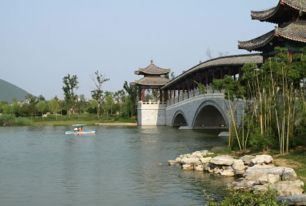 解憂橋:位于小南湖東南部,該橋?yàn)閱喂皹颉R粯蛄杩。登橋遠(yuǎn)眺,湖山盡收。劉解憂為西漢時(shí)期徐州第二代楚王劉戊的孫女,為了和親她作為為漢家公主奉命遠(yuǎn)嫁烏孫國(guó),為國(guó)家和人民的安寧獻(xiàn)出自己的寶貴青春。