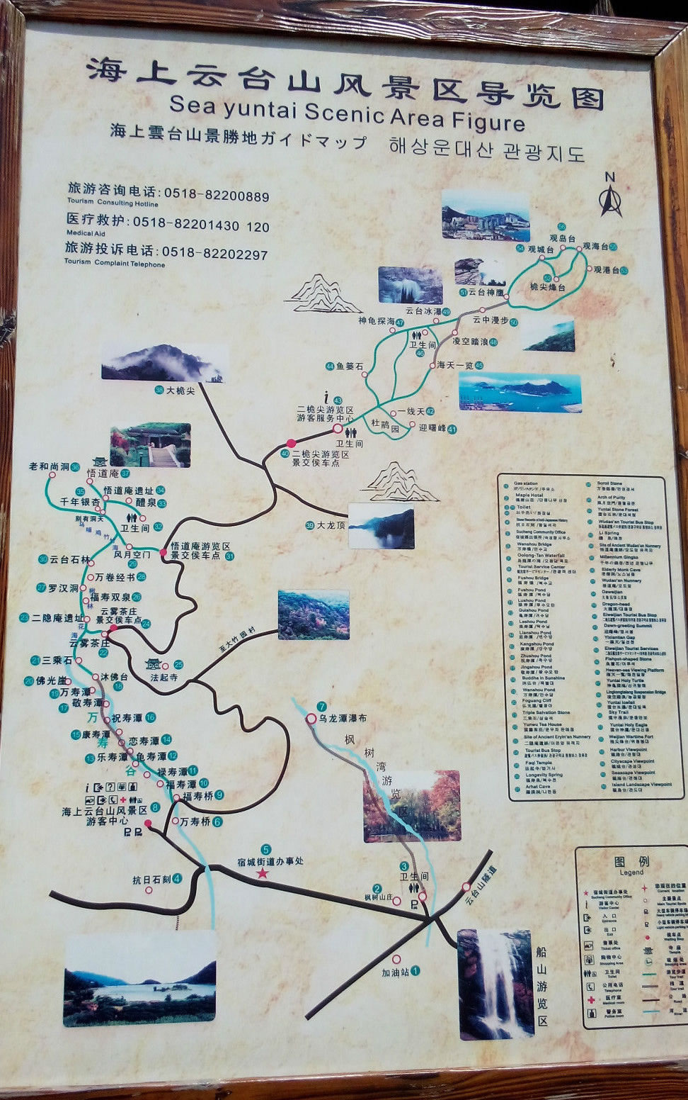 云臺山古稱郁州山,唐宋時稱蒼梧山。唐李白詩:“明月不歸沉碧海,白云愁色滿蒼梧!彼翁K軾詩:“郁郁蒼梧海上山,蓬萊方丈有無間”,寫的都是云臺山。她原來只是黃海中的一列島嶼,18世紀方與大陸相連。遂形成峻峰深澗,奇巖坦坡,山光水色,獨具神姿 ,被譽為:“海內(nèi)四大名靈”之一。明嘉靖年間道教興盛 ,道士云集達兩萬之眾,山又被譽為“七十一福地。