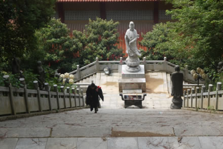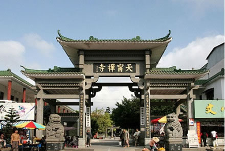 天寧古寺有過極盛的年華,隨著滄桑的變遷,屢經(jīng)摧殘,古寺蕩然無存。至1985年9月僅存一座高不到 二米、面積不足18平方米,風(fēng)雨飄搖的觀音間,神龕上只有一張圖像供游客參拜,當(dāng)年61歲的萬仁英同志,誠虔地來此剃發(fā)為尼,授法號叫釋順因,并將她多年的積蓄六千元贊助寺內(nèi)作經(jīng)費(fèi)。在古寺住持垂范下,用了七年時間,建成了一座氣派軒昂,規(guī)模宏偉的綜合性寺廟。建筑面積達(dá)五千平方米,屹立在灣里區(qū)南端,接待八方香客和游人。