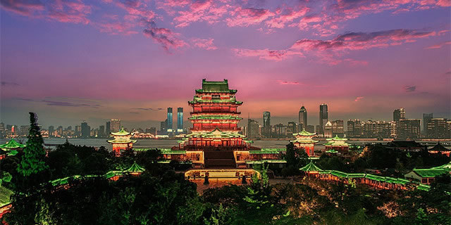 滕王閣,位于江西省南昌市東湖區(qū)沿江路,地處贛江東岸、贛江與撫河故道交匯處,為南昌市地標(biāo)性建筑、豫章古文明之象征。始建于唐永徽四年(653年),為唐太宗李世民之弟滕王李元嬰任江南洪州都督時所修,現(xiàn)存建筑為1985年重建景觀;因初唐詩人王勃所作《滕王閣序》而聞名于世;與湖南岳陽岳陽樓、湖北武漢黃鶴樓并稱為“江南三大名樓”,是中國古代四大名樓之一、“中國十大歷史文化名樓”之一,世稱“西江第一樓”。