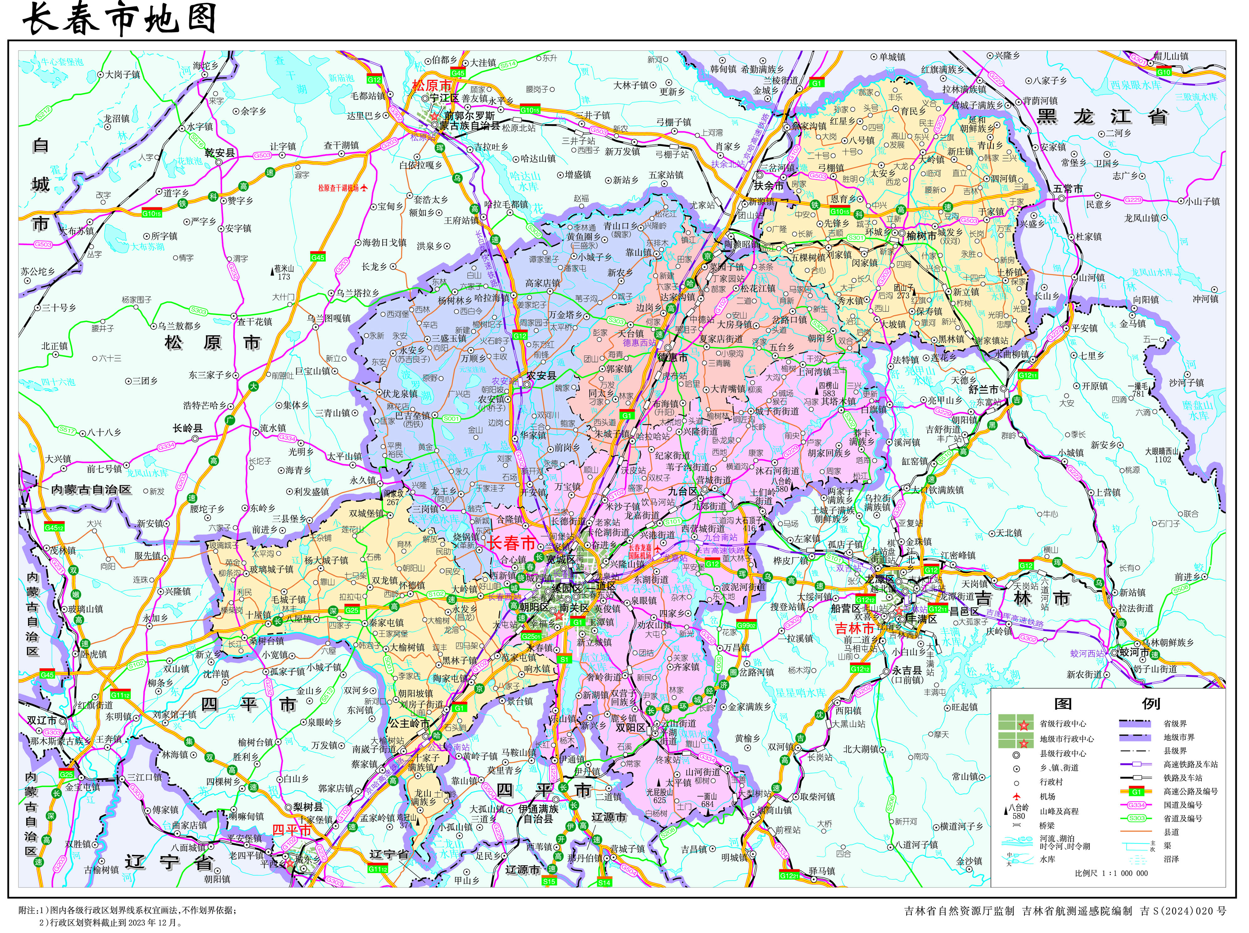 長春市轄7個(gè)市轄區(qū)、1個(gè)縣,代管3個(gè)縣級市: