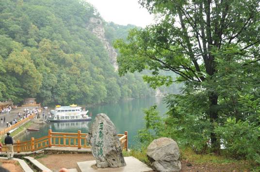 三角龍灣水面面積50公頃,湖中最大水深104米,蓄水量達(dá)1000萬立方米。因水面呈三角形,加之湖南側(cè)矗立著30米高的三角石,故名“三角龍灣”。