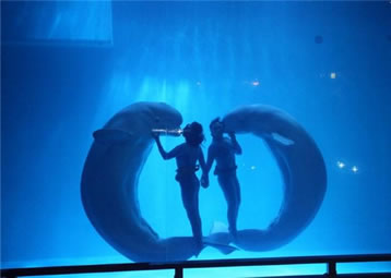 表演地點(diǎn):白鯨水下表演場(chǎng)(開放式表演場(chǎng),無(wú)表演時(shí)游客可透過(guò)玻璃展窗看白鯨游動(dòng))。
