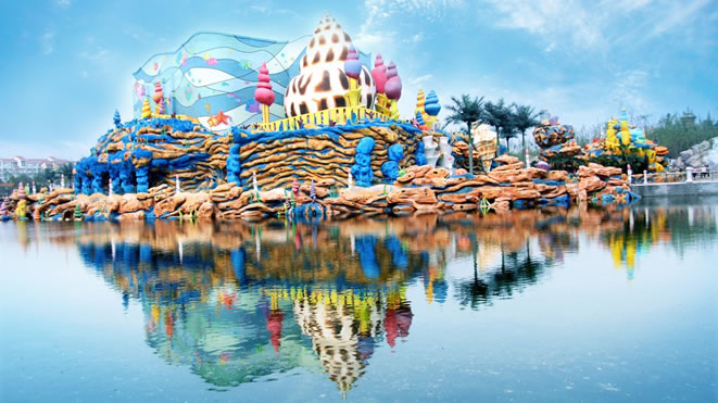五光十色的珊瑚環(huán)繞四周,可愛的魚兒在你身邊吐著泡泡,你熟悉的海螺灣小伙伴們近得讓你觸手可及。這是一個結(jié)合多個播放立體影片的大型銀幕、亦真亦幻的人造珊瑚和礁石景觀、大型機械動作模型的環(huán)境4D劇場,多種表演手段的運用, 周圍的環(huán)境和時刻變換的場景,讓您在歡樂美麗的海底世界觀賞海底居民的盛大表演。