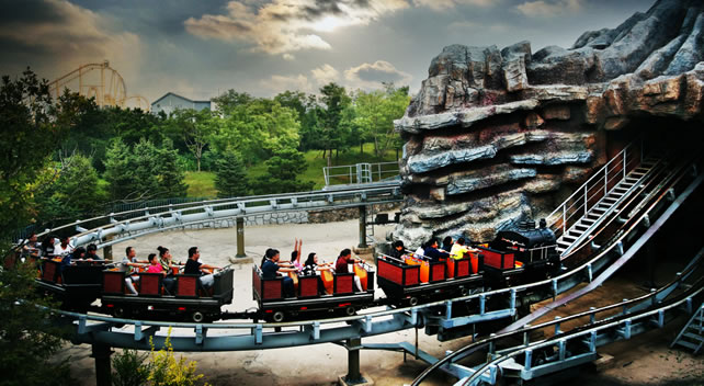 維蘇威火山是大型火山探險項目,游客乘坐著礦山車高速穿梭在蜿蜒盤旋的火山內(nèi),險象環(huán)生。巨大的轟鳴聲在山體中回蕩,礦山車快速行駛,車身大角度傾斜,同時伴隨著忽明忽暗的快速變化。因車子是由慣性在軌道上行駛,坐在后排的游客將體驗到比前排的游客更為刺激的感覺,而坐在前排的游客將體驗到第一個感受到刺激的感覺。歷時170秒左右的驚險歷程,使你感受到前所未有的刺激,讓你不得不盡情釋放你的歡笑和尖叫。