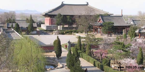 奉國(guó)寺:坐落在遼寧省義縣城內(nèi),始建于遼開泰九年(公元1020年)因殿內(nèi)塑有七尊大佛,又俗稱大佛寺。奉國(guó)寺由山門、牌坊、無量殿、鐘亭、碑亭、大雄殿、西宮禪院等古建筑構(gòu)成,占地3萬平方米,是一座宏偉壯觀,保存較為完整的古代寺院。大雄殿位于中軸線的北端,面寬9間,通長(zhǎng)55米,進(jìn)深5間,通寬33米,總高度24米,建筑面積1800多平方米。它不僅是國(guó)內(nèi)遼代遺存最大的木構(gòu)建筑,因其大雄殿規(guī)模面積全國(guó)最大,又堪稱中國(guó)寺院第一大雄寶殿。