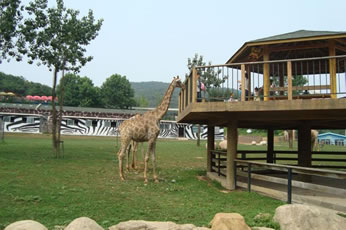 野生放養(yǎng)園的動物全在外邊放養(yǎng),游客可以乘坐觀光電平車游覽,或者步行觀賞。依次經(jīng)過的是草食動物園、熊園、虎園、獅園等園區(qū)。還有那些在林間的水潭邊跳躍的小鹿,悠閑地散步的長頸鹿。非洲野狗,又如三色犬,體形很小,只有一米高,但卻兇猛異常,可以捕食羚羊、斑馬等哺乳動物,買只獵物投食,瘋狂的野狗爭相奪食,異常血腥。(建議步行游覽即可,時間約50分鐘)亞洲食草動物區(qū)。有牦牛、駱駝、矮馬、白唇鹿、馬鹿、田鹿、梅花鹿、羊駝、犀牛等眾多動物,它們和睦相處、互不侵犯各怡然自得。游客可以拿點青草樹葉之類的食物,和它們近距離相處喂食。