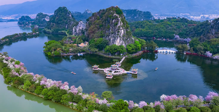 - 亮點(diǎn):以喀斯特溶巖地貌的巖峰、湖泊景觀為主要特色,包括天柱巖、玉屏巖、石室?guī)r等七座石灰?guī)r山峰,以及中心湖、仙女湖、里湖、青蓮湖和波海湖等五個湖泊。游客可在此欣賞到壯觀的巖峰和清澈的湖水,感受大自然的鬼斧神工。