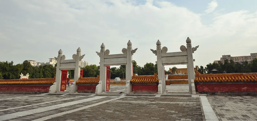 - 方澤壇西南角:仰拍圓形祭壇與天空同框,避開欄桿入鏡。