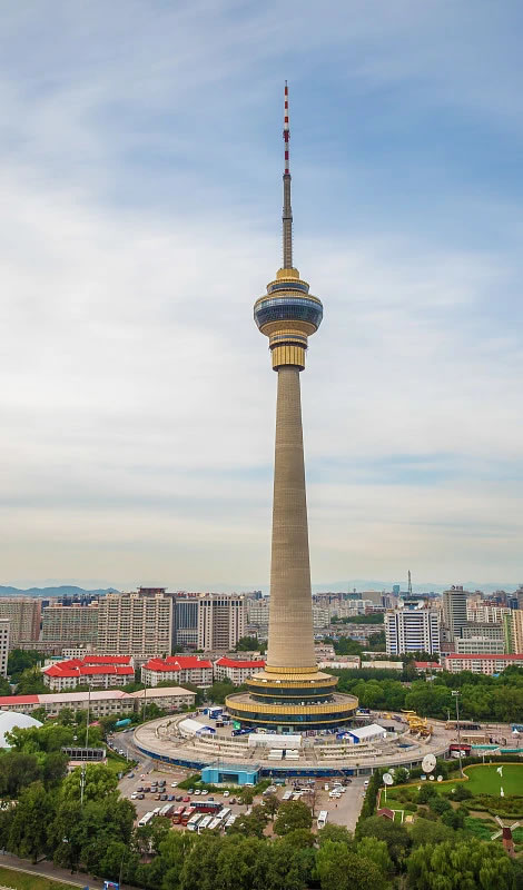 中央電視塔,位于中國(guó)北京市海淀區(qū),占地面積15.4公頃,塔高405米,始建于1987年1月,于1994年10月對(duì)外開(kāi)放,是集廣播電視發(fā)射和旅游觀光、餐飲、娛樂(lè)為一體的綜合性建筑。中央電視塔由棧橋廣場(chǎng)、退臺(tái)環(huán)廊、塔基、塔座、塔身、塔樓和桅桿組成。塔的造型別致,祈年殿式的重檐形式塔座;從地面升高到223米處,筒徑半徑向外挑出10米,形成一宮燈形的塔樓。采取混凝土整體澆注法,能達(dá)到抵抗九級(jí)地震的建筑要求。