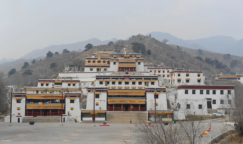 五當召,蒙古語“五當”意為“柳樹”;原名巴達嘎爾召,藏語“巴達嘎爾”意為“白蓮花”,“召”為“廟宇”之意。五當召位于內蒙古自治區(qū)包頭市石拐區(qū)東北約45公里的吉忽倫圖蘇木五當溝內的大青山深處。始建于清康熙年間(公元1662年—1722),乾隆十四年(公元1749年)重修,賜漢名廣覺寺。第一世活佛羅布桑加拉措以西藏扎什倫布寺為藍本興建,經(jīng)過康熙、乾隆、嘉慶、道光、光緒年間的多次擴建,逐步擴大至今日規(guī)模。因建在五當溝的一座叫做敖包山的山坡上,所以通稱其名為五當召。五當召依地勢面南而建。有大小殿宇、經(jīng)堂、僧舍2500余間,占地300多畝,分布在1.5公里長的山坡上。它是一幢層層依山壘砌的白色建筑,群山環(huán)繞,為蒼松翠柏掩映,雄渾壯觀。 它與西藏的布達拉宮、青海的塔爾寺和甘肅的拉卜楞寺齊名,是中國藏傳佛教的四大名寺之一和內蒙古自治區(qū)最大藏傳佛教寺院。
