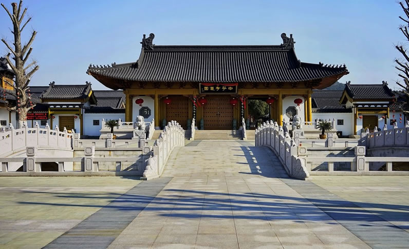 中華孝道園坐落于全國(guó)十大旅游名片之一的常州市武進(jìn)太湖灣旅游度假區(qū),占地860畝,面朝太湖,背依蓼莪山脈,位于太湖七灣中最美麗的一灣,空氣質(zhì)量等級(jí)為一 級(jí),是江南一帶的“世外桃源”。園區(qū)以距今1600多年歷史的古跡——蓼莪禪寺為依托,以弘揚(yáng)孝道精神為主旨,是融尋根祭祖、朝山禮佛、旅游觀光和覺悟教 育于一體的綜合景區(qū)。其主要景點(diǎn)和服務(wù)設(shè)施為蓼莪禪寺、正法明大殿、石窟觀音、妙音寶塔、先祖廟堂、中華孝道博物館、思恩廣場(chǎng)、凈心池、普光山莊等。