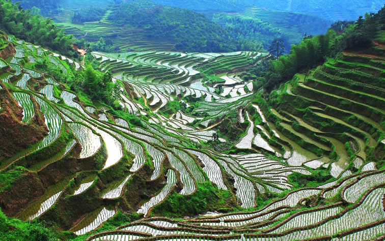 - 歷史背景:梯田開發(fā)歷史可追溯至宋代,客家人依山開墾,形成“森林-水系-梯田-村落”生態(tài)體系。