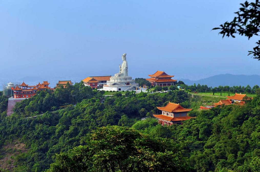 廣東觀音山國家森林公園,位于廣東省東莞市樟木頭鎮(zhèn)筆架山路190號觀音山,地處珠江三角洲東南部,東莞市東部,樟木頭鎮(zhèn)中心邊緣,距鎮(zhèn)中心1.5千米,距離東莞市區(qū)大約40千米,總面積657.18公頃。廣東觀音山國家森林公園最高點為耀佛嶺,海拔566米,觀音山海拔488米。屬丘陵山地地貌。所在地區(qū)樟木頭鎮(zhèn)屬南亞熱帶海洋性季風(fēng)氣候區(qū)。森林覆蓋率達92%以上,常見植物種類有73科199種。其中屬國家保護的動植物22種,瀕危植物包括粘木、白桂木、蘇鐵蕨、土蠶霜、金茶花、野茶樹和野生龍眼等。有獸類、飛鳥類、甲殼類、昆蟲類等300多種動物。廣東觀音山國家森林公園內(nèi)建成了以正門樓、觀音廣場、觀世音菩薩法像、仙宮嶺、普渡溪、感恩湖、回音壁、怡心亭、慈云閣、先人石壘、古樹博物館、國際會展中心、仙泉游泳館等20余處景點;內(nèi)設(shè)6.8千米的吉祥路(佛光路),既可觀景也可休閑健身;還有飛天威亞、龍鳳天梯、冰雪樂園、山地越野車等娛樂項目,是親子家庭放松休閑、寓教于樂的自然課堂。