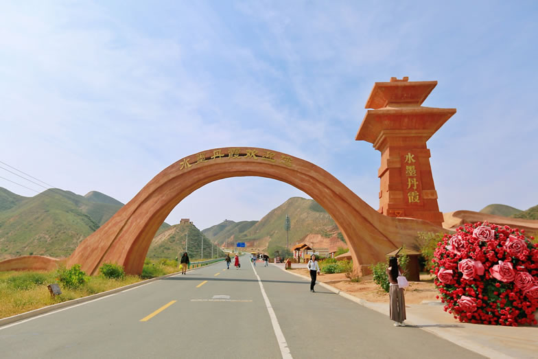 蘭州水墨丹霞旅游景區(qū)位于甘肅省蘭州市永登縣樹屏鎮(zhèn)杏花村,景區(qū)橫跨蘭州市的永登縣、西固區(qū)、皋蘭縣,主體位于永登縣的苦水鎮(zhèn)、樹屏鎮(zhèn),景區(qū)規(guī)劃總面積400平方千米,一期核心游覽面積20平方千米,是中國已發(fā)現(xiàn)面積最大的同類型地貌景觀。蘭州水墨丹霞地貌,發(fā)育于白堊紀(jì)至第三紀(jì)時期,是喜馬拉雅造山運動中發(fā)育形成的紅色巖系隨著地殼的抬升,保留下來的紅色砂巖,經(jīng)長期風(fēng)化剝離和流水侵蝕形成的地質(zhì)奇觀。2017年7月,蘭州水墨丹霞旅游景區(qū)取得市政府總體規(guī)劃批復(fù),于2018年7月完成立項,2019年4月啟動建設(shè),2021年10月1日正式開園。蘭州水墨丹霞旅游景區(qū)主要以紅山灣地貌為主,兼有丹霞崖壁、孤峰、幽谷等奇特景觀,主要景觀包括絲路霞光、九色丹青、丹頂攬勝等7個觀景平臺和絲路古途景觀大門、沙韻駝鈴景觀大道及全長3500米的丹霞棧道。蘭州水墨丹霞旅游景區(qū)因分布面積最大、地貌種類最全、形成時間最古老、發(fā)現(xiàn)時間最晚、保存最完好、離城市最近、原住居民最少、文化積淀最深、名人經(jīng)過最多而素有“九最”之稱。