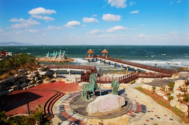 天馬廣場→海水浴場→獐島→御筆苑→秦風(fēng)崖→海島來信→海島日記→蓮花夕照(含日落)