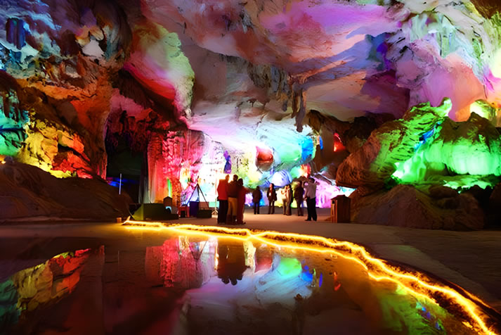 - 鐘乳石群:神龜探海、海狗觀天、雄獅倒掛、玉女獻(xiàn)花等形態(tài)各異的鐘乳石,搭配天然巖畫(龍、蝦、龜?shù)龋鹑绲叵滤囆g(shù)殿堂。