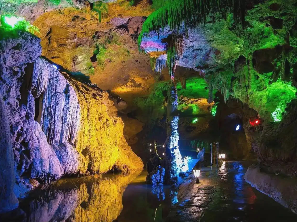 - 核心特色:四層溶洞體系、全長(zhǎng)6公里的地下長(zhǎng)河(明河1.5公里+暗河4.5公里)、恒溫18-19℃的洞穴環(huán)境、高空速滑(中國(guó)第一,落差100米)、卡丁車場(chǎng)、土風(fēng)舞表演及篝火晚會(huì),融合探險(xiǎn)、休閑、文化體驗(yàn)于一體。