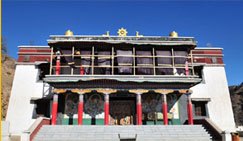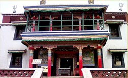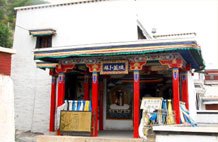 原名努尼殿,是供僧人靜坐休持的殿,用于喇嘛們以逐漸減少飲食,靜坐默誦,力圖不食不語(yǔ)的修行方式去解脫超度眾生靈。后來毀于文革動(dòng)亂。2003年國(guó)家撥款在遺址上恢復(fù)并擴(kuò)建此殿,2005年9月開始對(duì)外開放,全殿上下兩層,一樓為佛堂,供有千手千眼觀音像、六世班禪大師、宗喀巴大師像,正中供奉的三世佛為銅鑄鍍金佛像。墻上所繪壁畫是藏傳佛教九大佛寺壁畫。