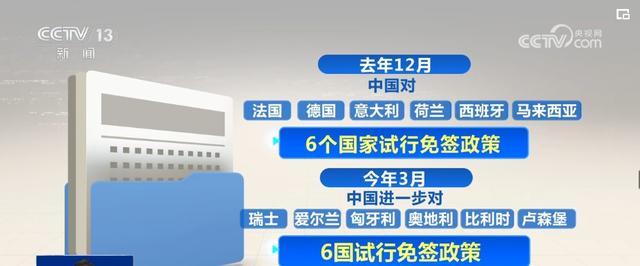 2023年12月,中國對法國、德國、意大利、荷蘭、西班牙、馬來西亞6個國家試行免簽政策。2024年3月,中國又進一步對瑞士、愛爾蘭、匈牙利、奧地利、比利時、盧森堡6國試行免簽政策。