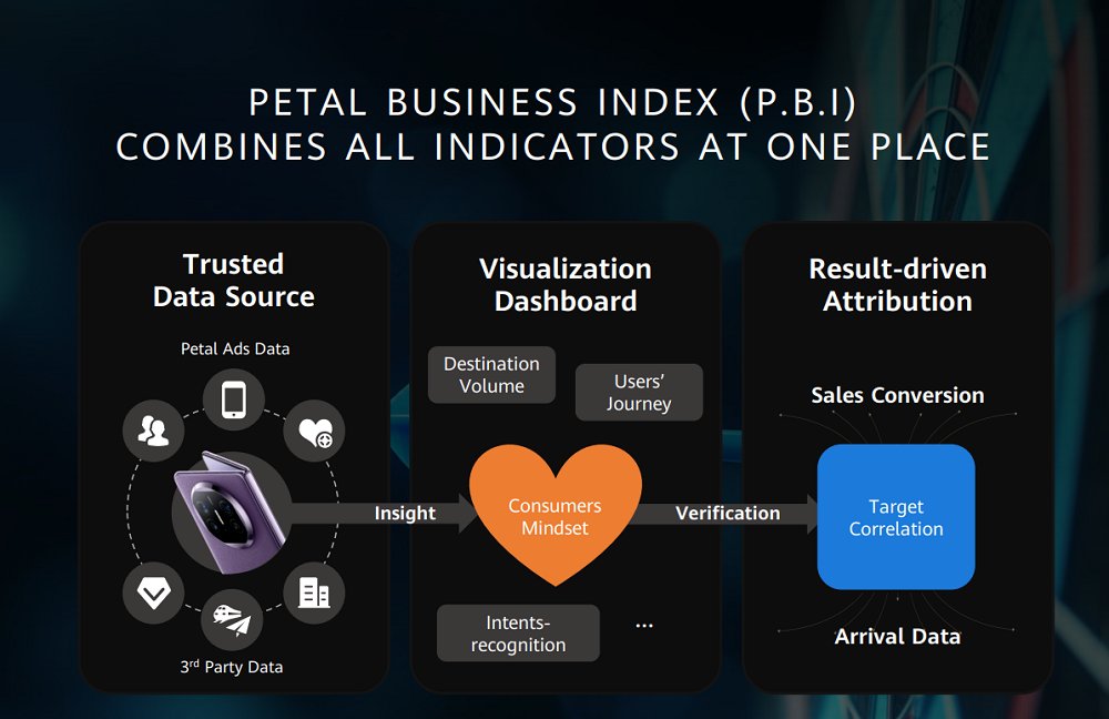 借助華為的技術(shù)和生態(tài)系統(tǒng)合作伙伴,鯨鴻動(dòng)能還構(gòu)建了Petal Business Index(P.B.I)跨境數(shù)據(jù)驅(qū)動(dòng)解決方案,以滿足更多企業(yè)組織的需求。作為以數(shù)據(jù)驅(qū)動(dòng)的營銷工具,P.B.I整合了來自華為設(shè)備和鴻蒙生態(tài)的全方位數(shù)據(jù),并與第三方在線旅游服務(wù)平臺(tái)等行業(yè)伙伴合作,共同構(gòu)建了一個(gè)可信賴的數(shù)據(jù)模型,并圍繞目的地的關(guān)鍵指標(biāo)建立可視化的儀表板。P.B.I通過建立銷售轉(zhuǎn)化與落地?cái)?shù)據(jù)之間的相關(guān)模型,進(jìn)行有效性分析,輔助營銷策略的制定。