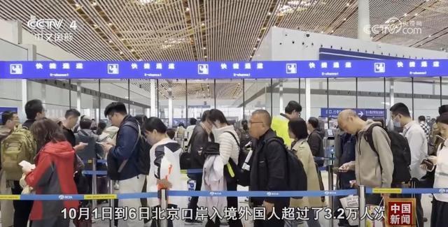 北京邊檢總站執(zhí)勤三大隊(duì)執(zhí)勤二隊(duì)副隊(duì)長(zhǎng)池尚琨稱(chēng):“10月1日到6日,北京口岸入境外國(guó)人超過(guò)3.2萬(wàn)人次,約是去年同期的2.14倍。”