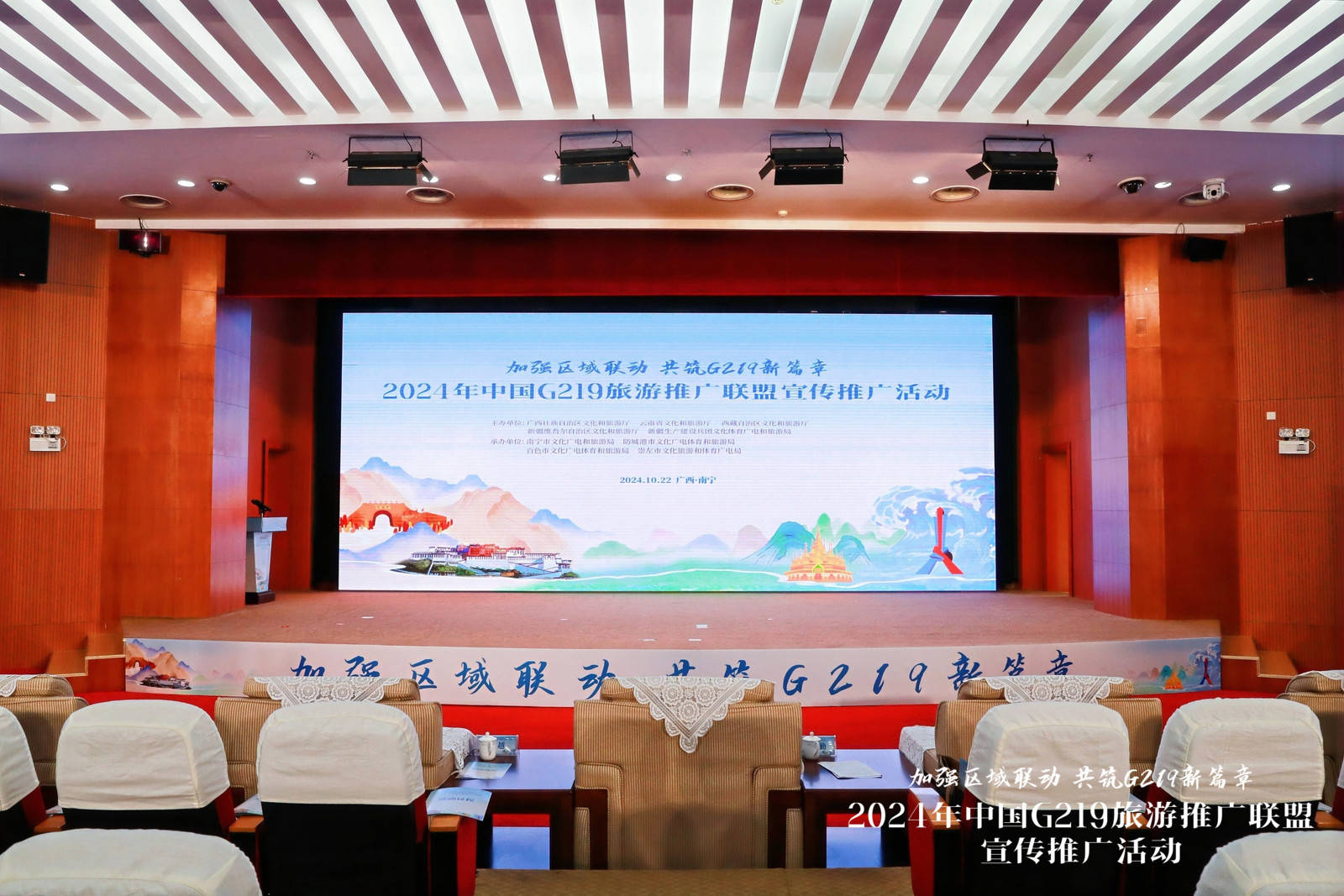 2024年10月21日—24日,中國(guó)G219旅游推廣聯(lián)盟宣傳推廣活動(dòng)(以下簡(jiǎn)稱“聯(lián)盟推廣活動(dòng)”)在廣西南寧市舉辦,本次活動(dòng)由廣西壯族自治區(qū)文化和旅游廳、云南省文化和旅游廳、西藏自治區(qū)文化和旅游廳、新疆維吾爾自治區(qū)文化和旅游廳、新疆生產(chǎn)建設(shè)兵團(tuán)文化體育廣電和旅游局聯(lián)合主辦。廣西壯族自治區(qū)文化和旅游廳黨組成員、副廳長(zhǎng)班華勤、西藏自治區(qū)文化和旅游廳黨組成員、副廳長(zhǎng)姬越、云南省文化和旅游廳二級(jí)巡視員劉曉桐、新疆維吾爾自治區(qū)文化和旅游廳資源開發(fā)處段玉明處長(zhǎng),新疆生產(chǎn)建設(shè)兵團(tuán)文化體育廣電和旅游局旅游處處長(zhǎng)楊紅艷出席活動(dòng)。來(lái)自廣西、云南、西藏、新疆等省區(qū)和新疆生產(chǎn)建設(shè)兵團(tuán)的文旅相關(guān)部門、行業(yè)協(xié)會(huì)、文旅企業(yè)代表及旅游達(dá)人、媒體記者等200多人參加活動(dòng)。