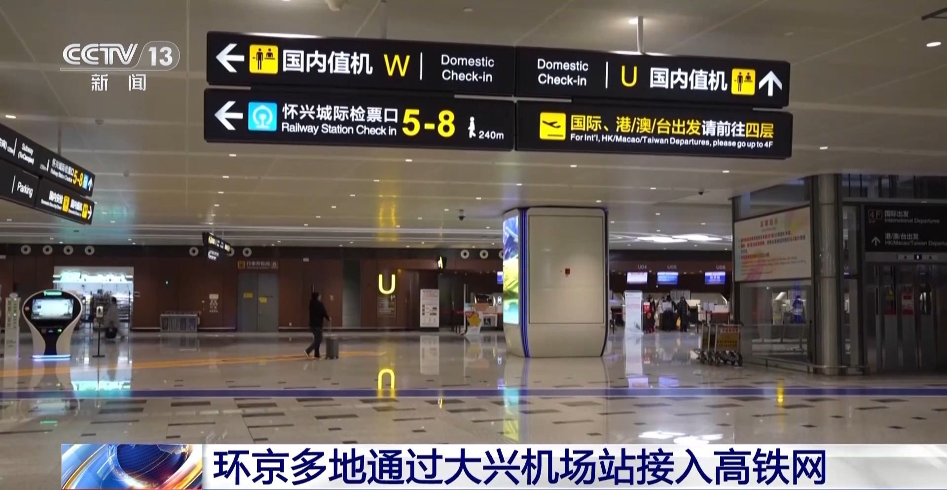 北京大興國際機場公共區(qū)管理部業(yè)務經理 焦永杰:為加強城際鐵路大興機場站與大興機場的信息共享,我們將列車動態(tài)信息顯示前置航站樓。后期大興機場與鐵路部門將繼續(xù)加強業(yè)務互動與信息共享,持續(xù)提升列車與航班在運力、時刻方面的匹配度。