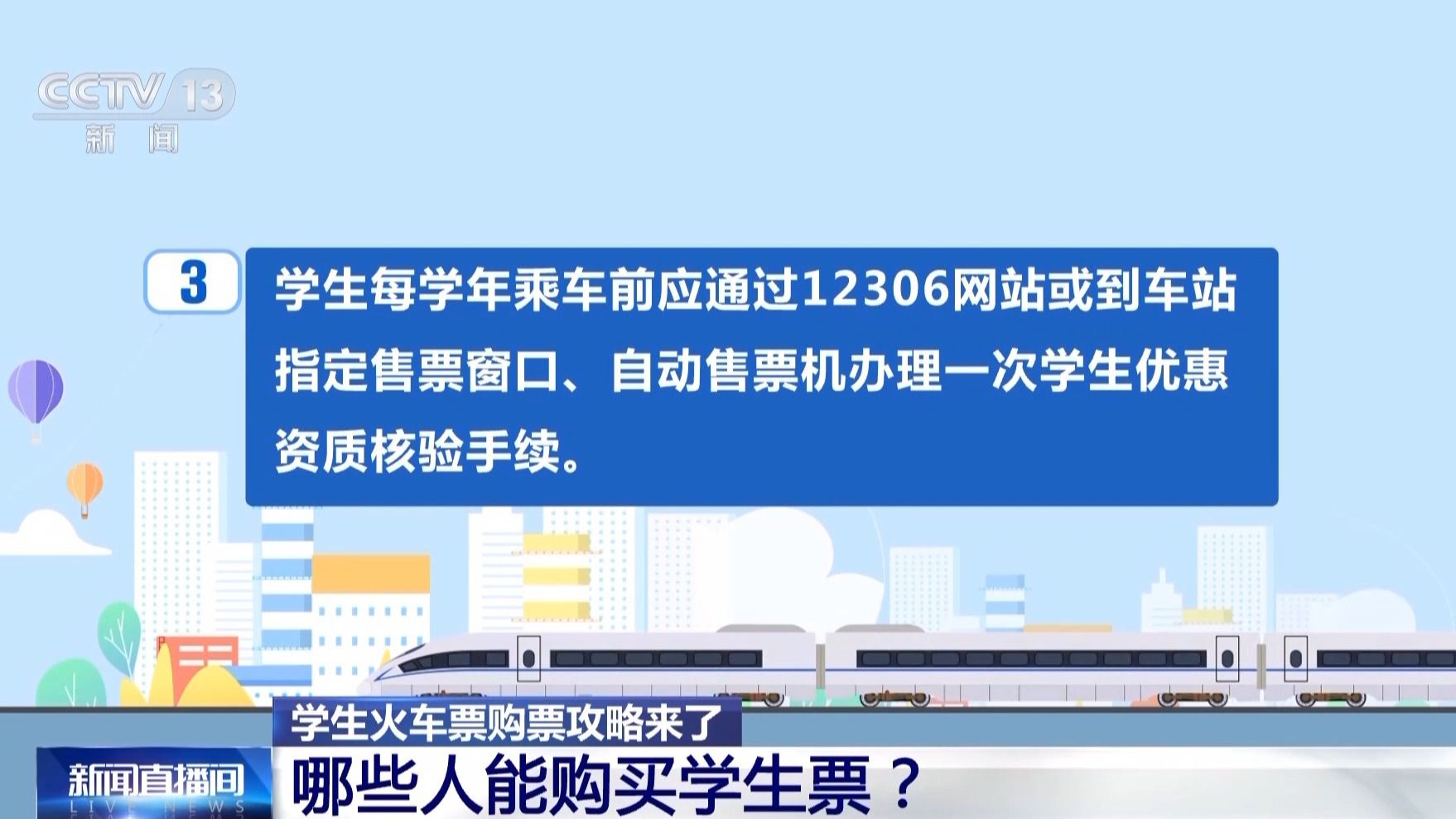 學(xué)生每學(xué)年乘車前應(yīng)通過12306網(wǎng)站或到車站指定售票窗口、自動售票機辦理一次學(xué)生優(yōu)惠資質(zhì)核驗手續(xù)。