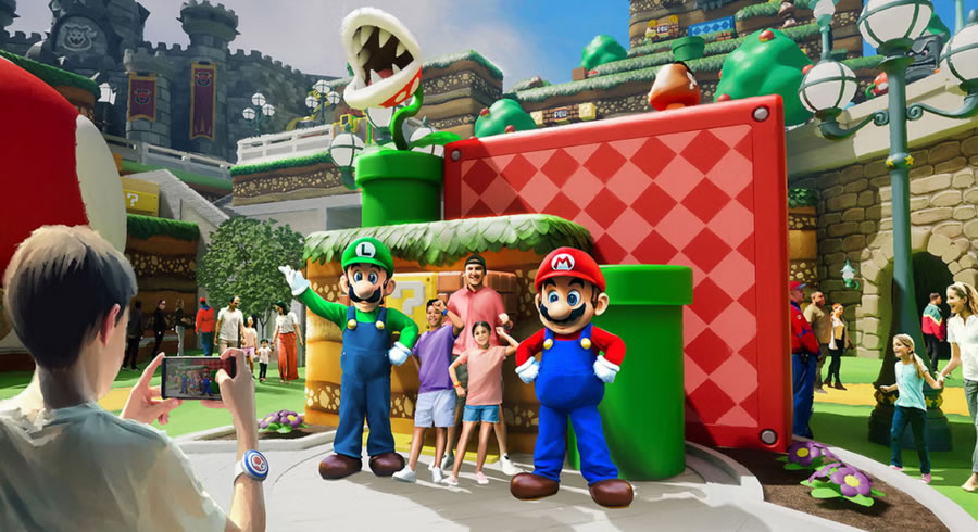 項(xiàng)目由五大官方主題宇宙聯(lián)動(dòng),從踏入樂園中央的 “星際之光廣場(Celestial Park)” 開始,游客將穿越由發(fā)光步道串聯(lián)的五大主題世界,每一處均由環(huán)球影業(yè)與頂級(jí)IP聯(lián)合打造:第一個(gè)超級(jí)任天堂世界(Super Nintendo World)由任天堂(Nintendo)工作室操刀, 作為北美首個(gè)、全球最大的任天堂主題區(qū),游客將佩戴 “能量手環(huán)(Power-Up Band)” 進(jìn)入1:1還原的蘑菇王國。核心設(shè)施 “馬里奧卡丁車:庫巴的挑戰(zhàn)(Mario Kart: Bowser’s Challenge)” 通過AR眼鏡與動(dòng)態(tài)軌道結(jié)合,讓玩家在虛實(shí)交織的賽道上發(fā)射虛擬龜殼;家庭向的 “耀西的冒險(xiǎn)騎行(Yoshi’s Adventure Ride)” 則穿越彩虹賽道與食人花叢林,車載攝像頭自動(dòng)生成動(dòng)態(tài)紀(jì)念照片。