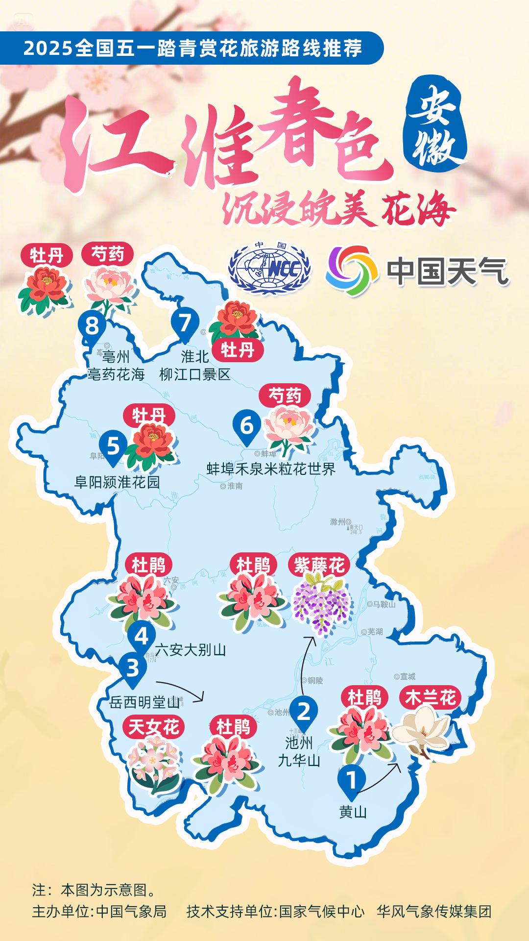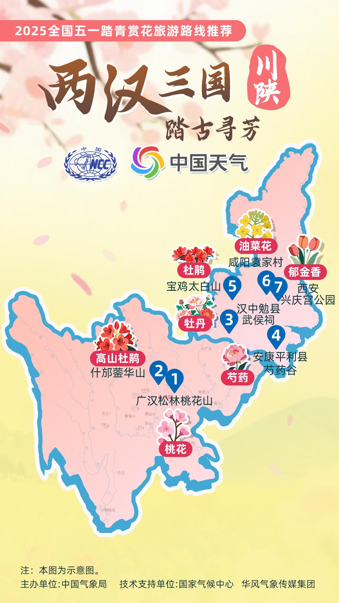 正值杏花、杜鵑花等春花盛放時(shí)節(jié),中國(guó)氣象局針對(duì)全國(guó)景點(diǎn)主要花品,對(duì)其生長(zhǎng)積溫和物候期進(jìn)行關(guān)聯(lián)性分析,建立多種花品的最佳觀(guān)賞期預(yù)報(bào)模型,提供賞花預(yù)報(bào)服務(wù)。在此基礎(chǔ)上,國(guó)家氣候中心、華風(fēng)氣象傳媒集團(tuán)依據(jù)歷史氣候資料和今年氣候預(yù)測(cè),參考花期模型預(yù)報(bào)結(jié)果,結(jié)合區(qū)域地理分布、小氣候特征和旅游景點(diǎn)等信息,推出4月下旬至5月上旬適宜踏青賞花的線(xiàn)路。